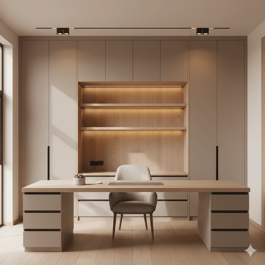 Smart, functional cabinetry for home offices and professional environments. Custom-look built-ins, organized storage, and clean design — built to support productivity while maintaining elevated aesthetics.